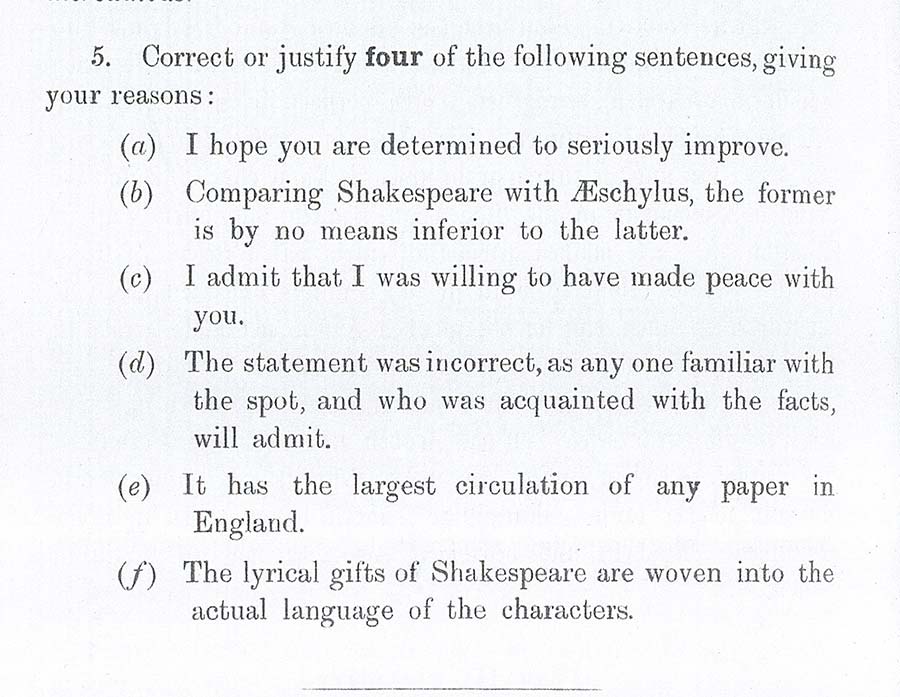Have a look at this 110-year-old question from our first English exam: