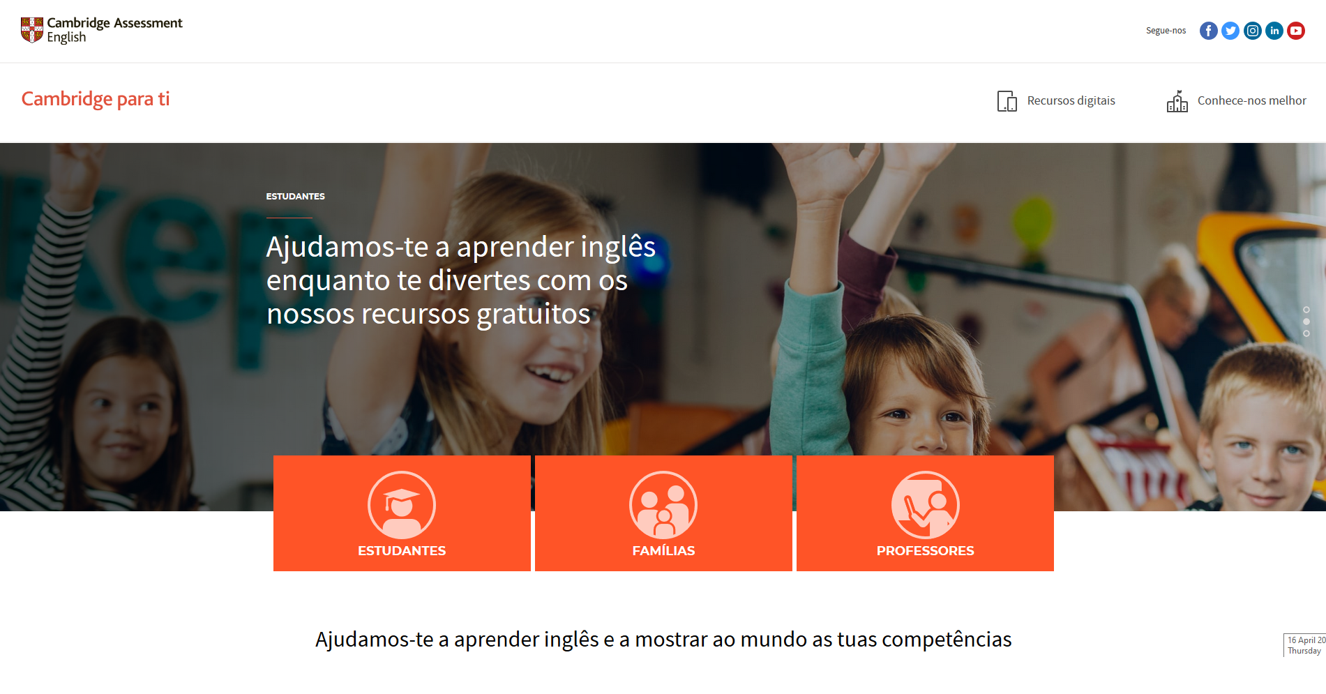 A new website made specifically for Portuguese families to practise English at home. Includes resources for children up to 12 years old, divided by level.