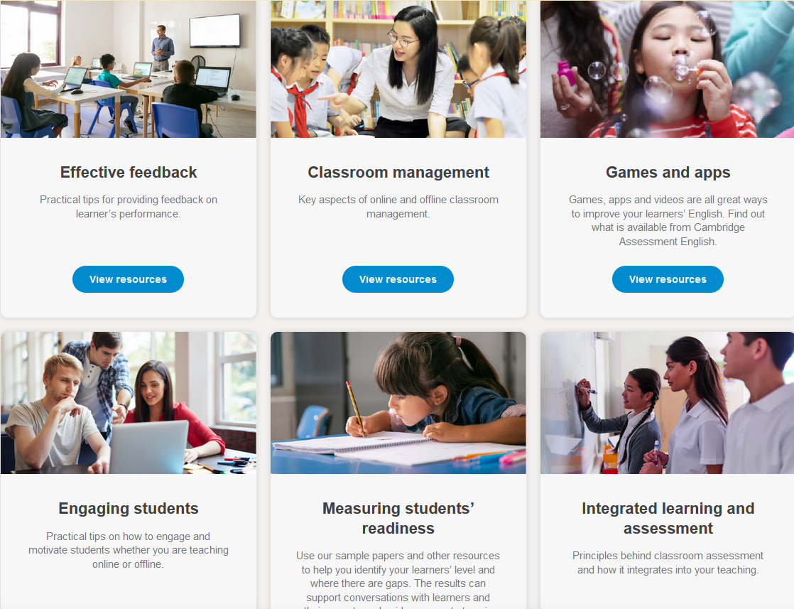 You'll find useful ideas, tips and materials for the Starters, Movers and Flyers exams, from vocabulary games and theatre plays to webinars for teachers. All resources are sorted by level, making it easier for you to find what you need.