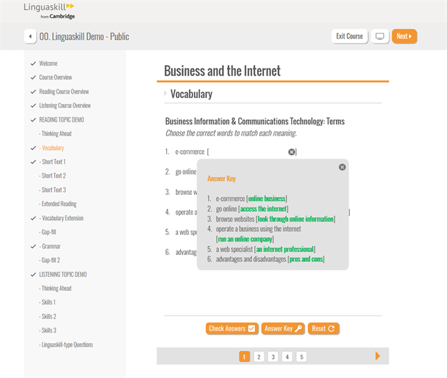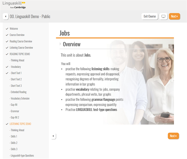 A learning solution that can be used with the Linguaskill by Cambridge test, either for self-guided learning or as a formal course.